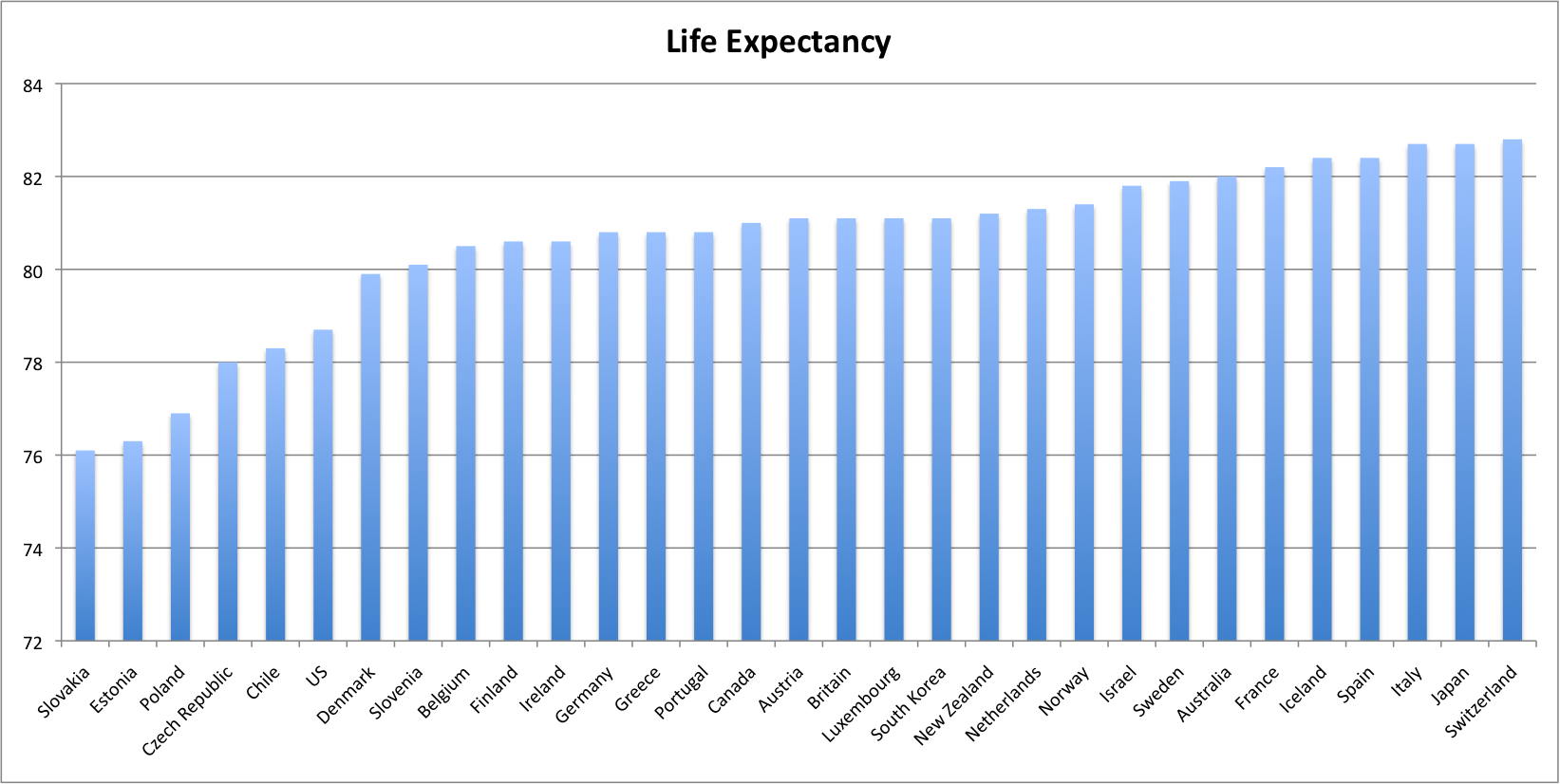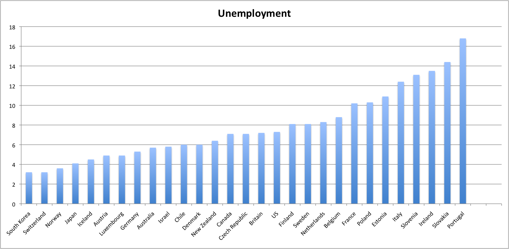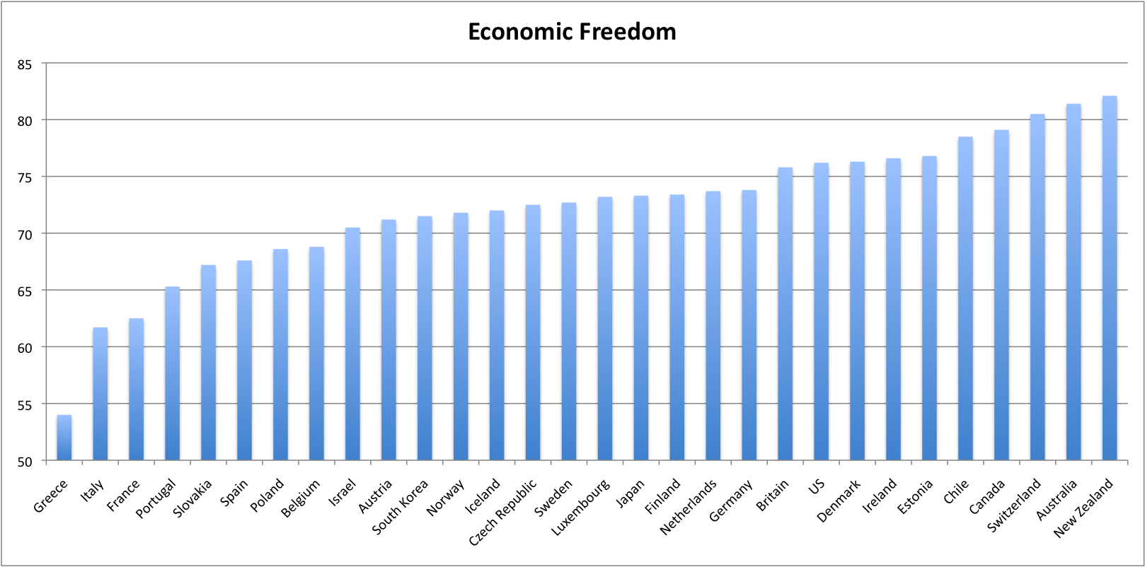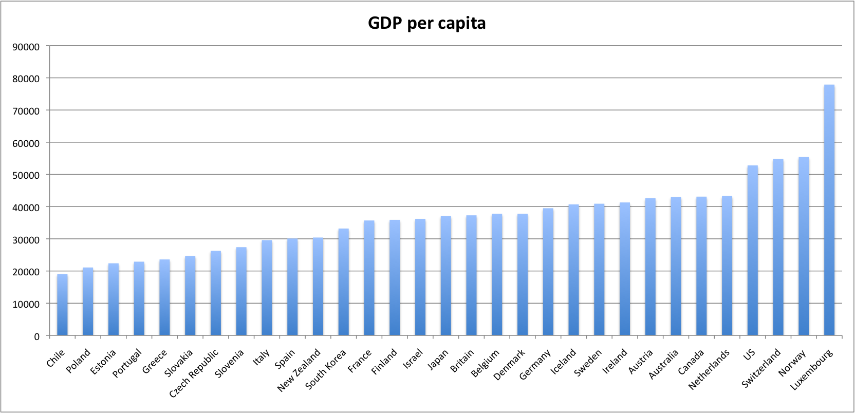 I’ve compiled a massive spreadsheet with the following information for all 31 OECD countries. Click on the graph to see greater detail.