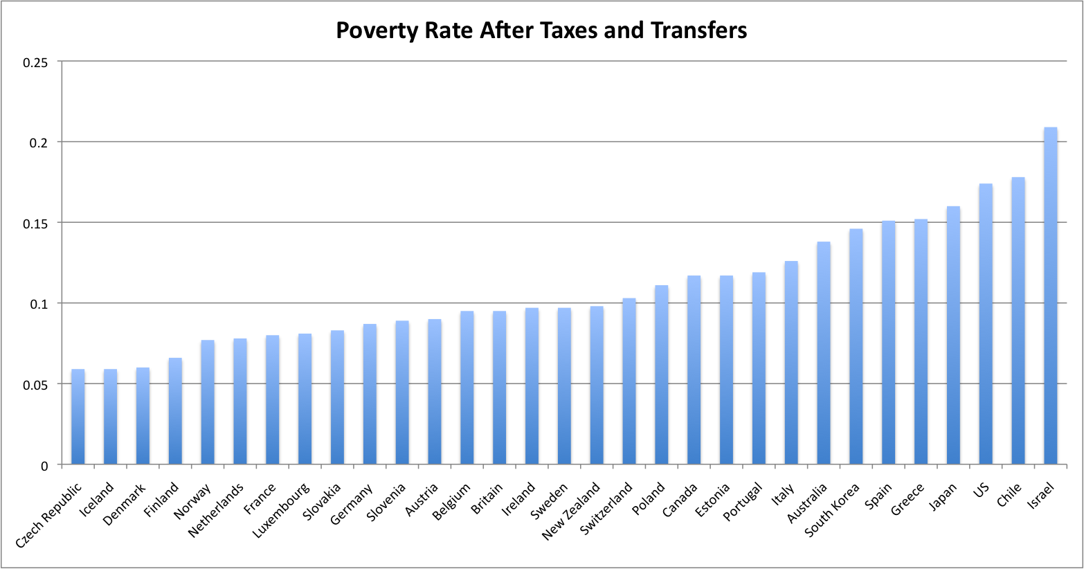 - Poverty (poverty rate after taxes and transfers, including safety net).
