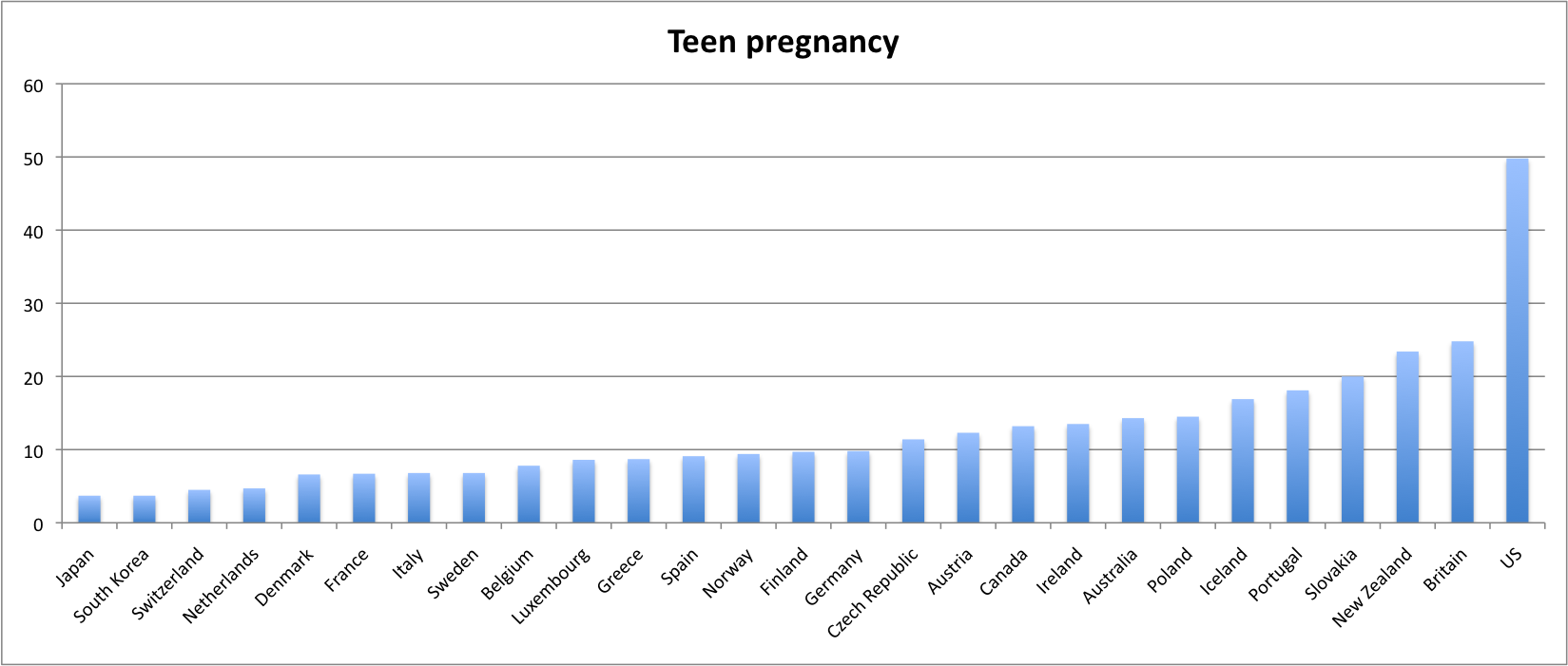 - Teenage Pregnancy (Teenage birth rates are measured as births per 1,000 15 to 19-year-old females for the year 2005.)